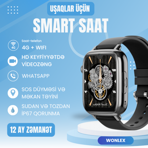 Wonlex KT34, uşaqlar üçün hazırlanmış müasir 4G GPS ağıllı saatıdır, təhlükəsizlik, ünsiyyət və əyləncə imkanlarını bir araya gətirir. Canlı GPS izləmə, HD video zənglər, WhatsApp dəstəyi və Play Store girişi sayəsində bu saat həm təhlükəsiz, həm də maraqlı bir təcrübə təqdim edir.