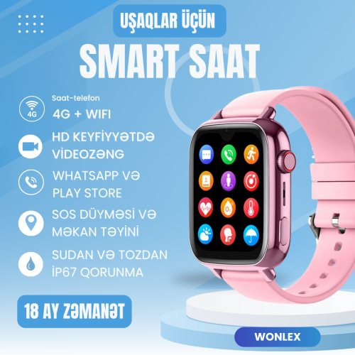 Wonlex KT34, uşaqlar üçün hazırlanmış müasir 4G GPS ağıllı saatıdır, təhlükəsizlik, ünsiyyət və əyləncə imkanlarını bir araya gətirir. Canlı GPS izləmə, HD video zənglər, WhatsApp dəstəyi və Play Store girişi sayəsində bu saat həm təhlükəsiz, həm də maraqlı bir təcrübə təqdim edir.